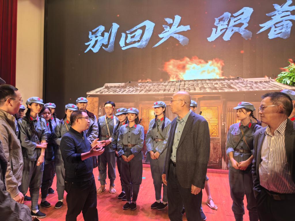 近日,学校院长谢鸿全、党委副书记熊剑、副院长鲍学东到思政红色文化实践课现场,围绕情景剧主题立意、剧本创作、表演形式等关键环节指导把关,推动学校红色文化育人工作走深走实。作为学校“大思政课”建设的核心载体,该实践课自本学期启动以来,始终得到学院领导的高度重视与全方位赋能。