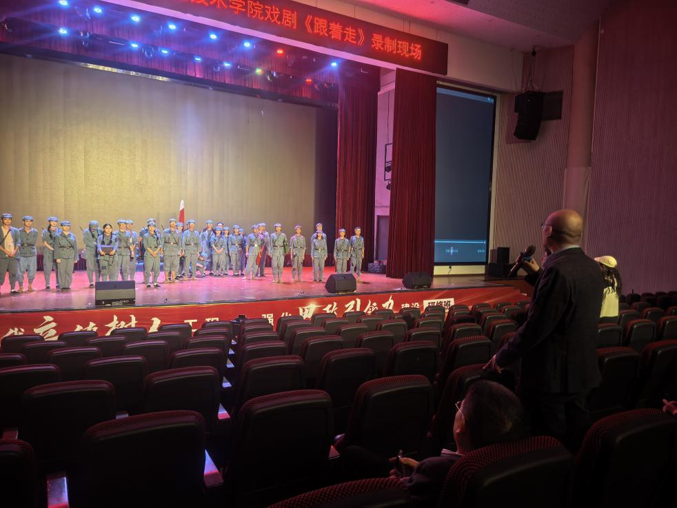各位领导的精准指导为实践课开展锚定清晰方向。在为期一个月的实践进程中,同学们在教师团队带领下,利用课余时间深耕剧本细节、亲手制作场景道具、系统查阅党史文献,以严谨态度还原历史场景、诠释革命精神。参与表演的大一学生坦言:“领导们的细致点拨让我们对红色文化的时代价值理解更深刻,思政实践课不仅是表演技能的提升,更是一次沉浸式的精神洗礼,让我们真切体会到革命先辈的理想信念与奋斗担当。”