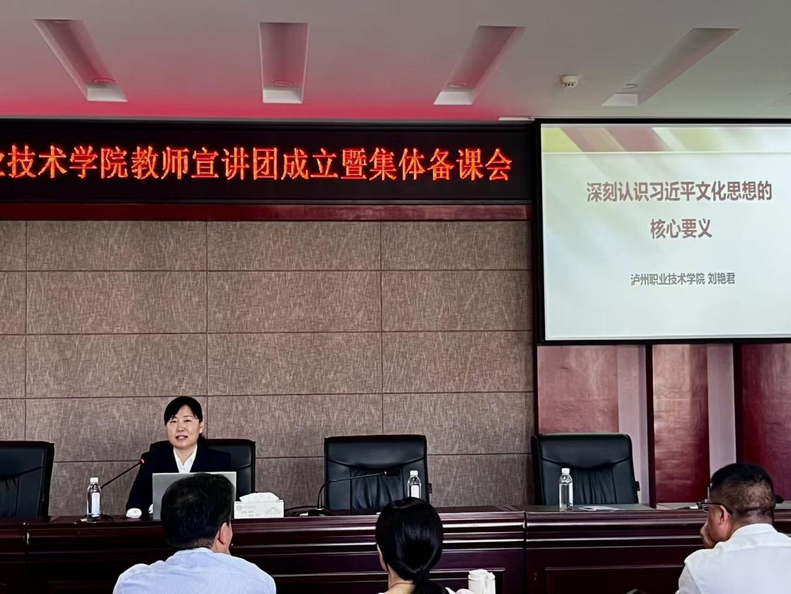 党委宣传部部长卢玲宣读了《泸州职业技术学院教师宣讲团成员名单》。经过单位推荐、初审、试讲评审、学校复核等层层严格选拔,15名优秀教师脱颖而出,成为首批宣讲团成员,涵盖马克思主义学院、智能制造与汽车工程学院、师范学院、商学院、中国酒业学院等十余个二级单位。实现了多学科、多领域师资的有机融合。